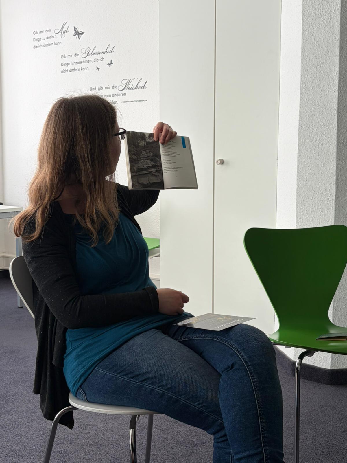 Die trialogische Gedichtsammlung beschäftigt sich mit Themen rund um seelische Gesundheit. In ihren Texten greift die Autorin unter anderem Depression, Alkoholabhängigkeit und transgenerationale Traumata auf, richtet den Blick aber ebenso auf Selbstfürsorge, Selbstakzeptanz und innere Stärke. Die Gedichte berührten viele der Anwesenden und eröffneten einen intensiven und wertschätzenden Austausch.